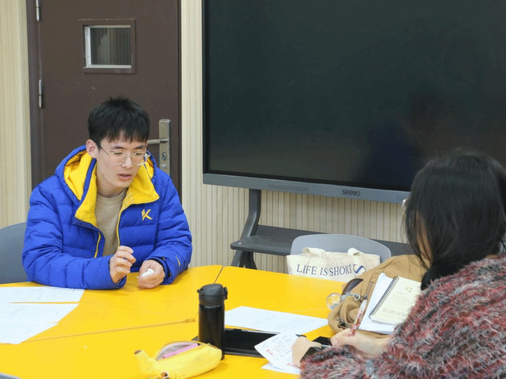 面试过程中,来自各个班级的同学们都自信大方地进行了自我介绍。他们在展示自己优势的同时,也向面试官讲述了自己愿意投身于“家风馆”讲解工作的初心和目的。无论是为提高自身讲解、沟通能力,还是想为弘扬中华优秀传统文化贡献自己的一份力量,都成为了他们前来面试、决心做好讲解工作的动力。接着,面试官们向他们提出了一系列的问题:对家风、家训的了解,对工作过程中将面临的困难的态度等。对此,同学们侃侃而谈,回答不尽相同、各有千秋。除此之外,面试官们还要求面试者现场朗读指定语段,以筛选出普通话标准、吐字清晰、音质纯正的讲解者。面试者们语气亲切、语调柔和,同时泰然自若、富有感染力,仿佛自己已然置身于满是观众的“家风馆”展厅内。