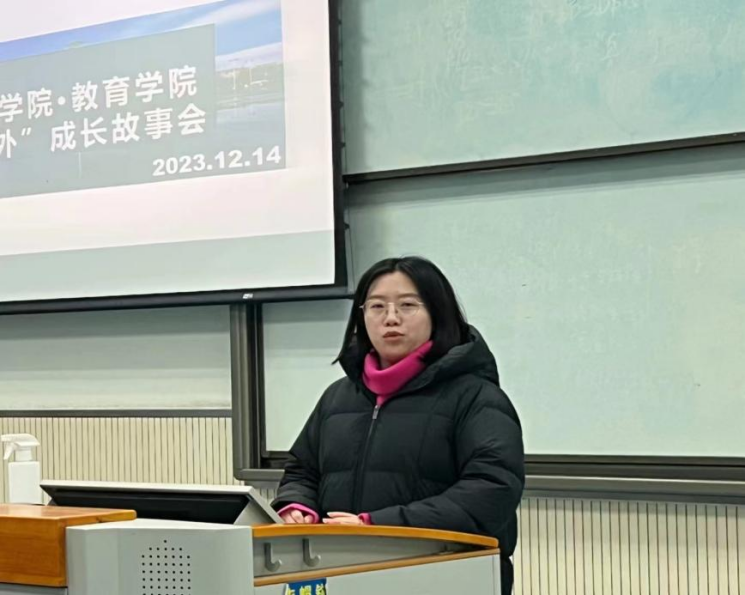 故事会正式开始前,刘一静进行了热情的致辞。她指出,朋辈交流传经验,助力成长思而学,经验代代相传,精神生生不息。希望在未来的学习与生活中,英师学子们能结合自身情况,将学长学姐们的经验付诸实践,砥砺前行,不负青春韶华。