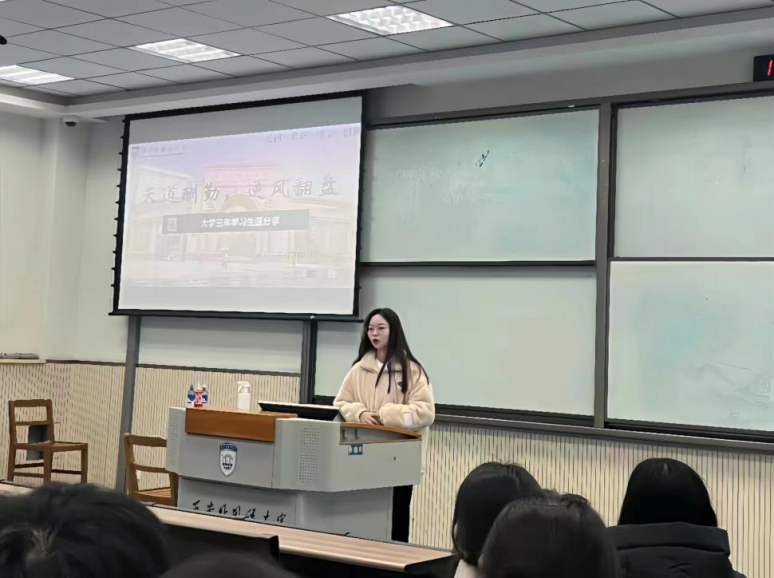 方玫文学姐的分享主题为“天道酬勤,逆风翻盘—三年学习生涯分享”,分享过程中着重为我们介绍了保研的流程和注意细则。在介绍中,她指出在进行保研规划的过程中,要注意时间节点,主动打破消息壁垒,明确阶段性成长目标,做好个人规划安排。方玫文强调同学们要树立良好的学习态度,直面困难,将目标化为动力,认真对待每一门专业课,在有限的时间里做到极致。
