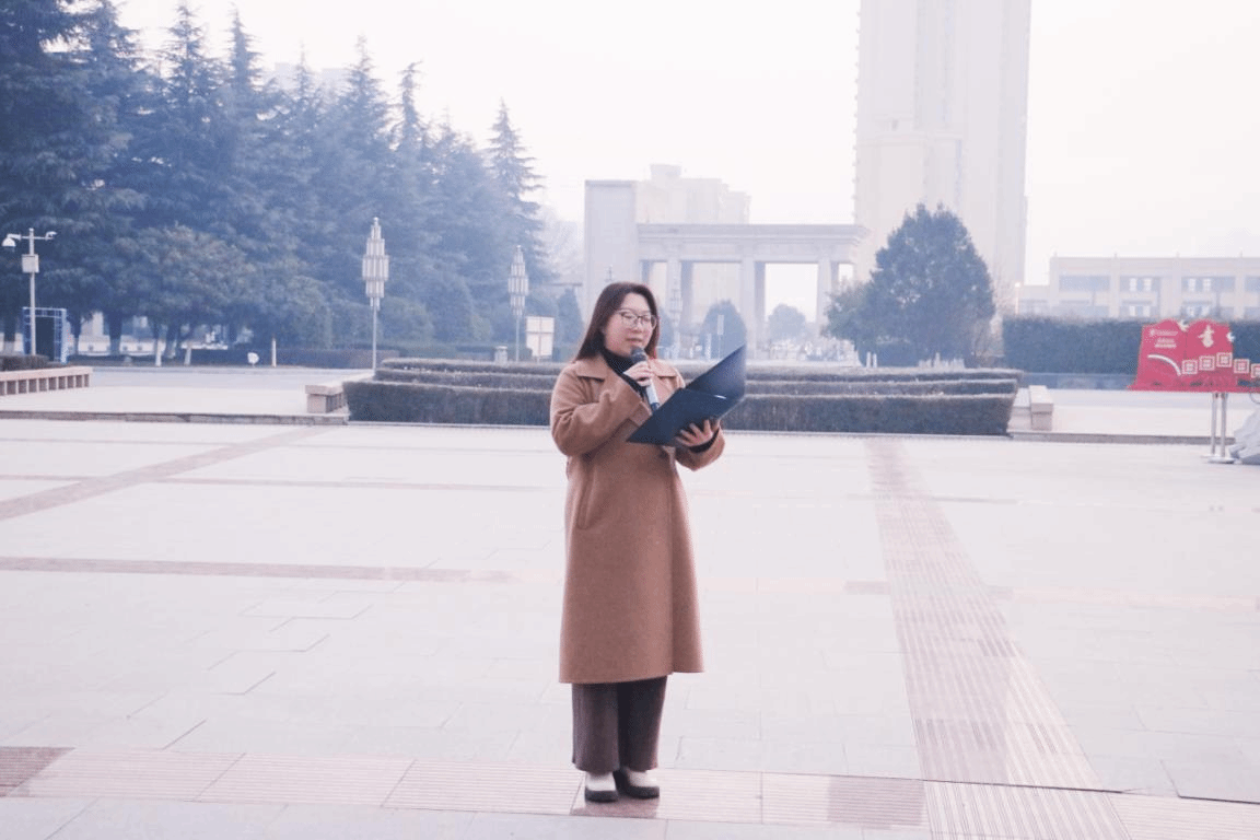 随后,21级团委学生会轮值主席钟姝雅在国旗下进行演讲。她指出“奋斗是青春最亮丽的底色,行动是青年最有效的磨砺”,作为新时代青年,理当树立理想信念,勇于担当,砥砺前行。用拼搏点亮无悔青春,用奋斗书写辉煌人生。