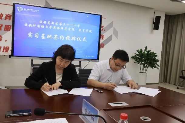 与西安市高新区第三十一小学签署校外实习基地合作协议并举行授牌仪式。鸭奈飞