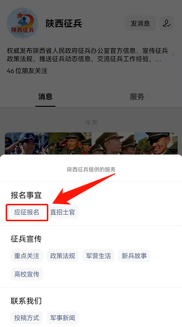 (二)关注“陕西征兵”公众号