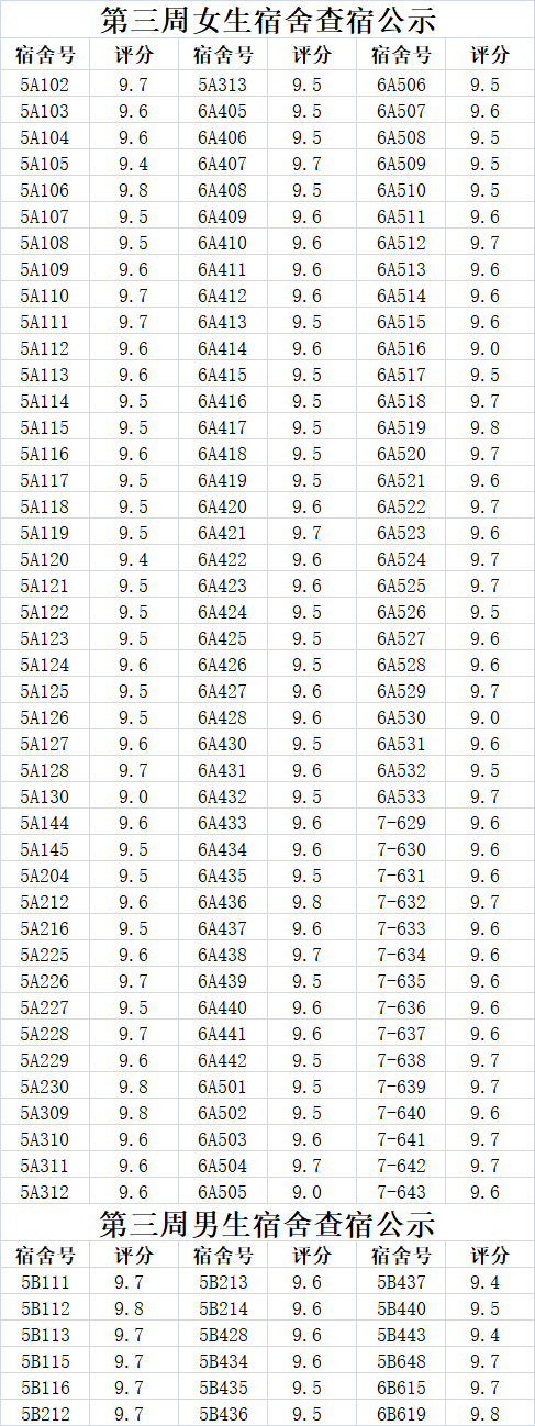 按例进行第三周的宿舍卫生检查活动。