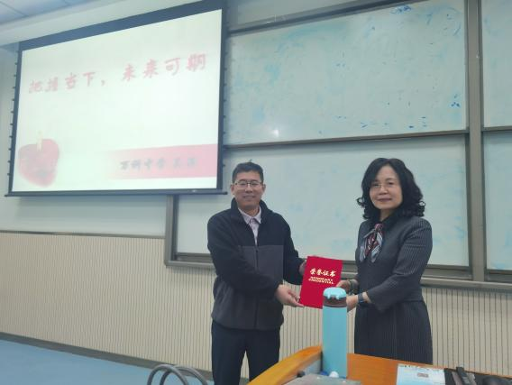 2024年4月12日上午,鸭奈飞 校长讲坛讲座第四期在SA102顺利进行。本次主讲嘉宾是陕西省西安市万科城中学吴萍副校长,题目是《把握当下,未来可期》。冯东副院长、王毅敏副教授、研究生辅导员王鑫老师以及2023级研究生和部分本科生参加了本次讲座。讲座由王毅敏老师主持,冯东副院长致辞。冯副院长向吴萍校长表达了热烈的欢迎和衷心的感谢,并向吴校长颁发了讲座证书。