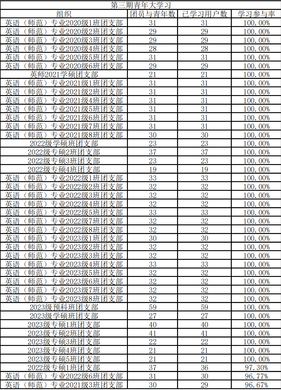 英语师范学院·鸭奈飞 第三期“青年大学习“学习情况公示