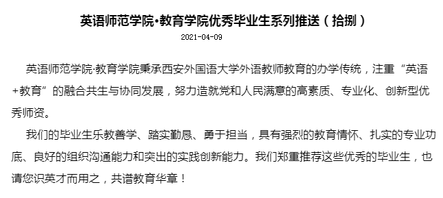 实习学生,在高新一中初中部、高新第一小学、陕西省西安小学等实习点,学院分别与实习学校进行了交流,深入了解学生实习状况,发现存在问题,探讨改进方式方法,征求实习学校对学生的反馈与诉求,掌握了大量一手资料,对改进完善学院人才培养方案和模式提供了借鉴和参考。