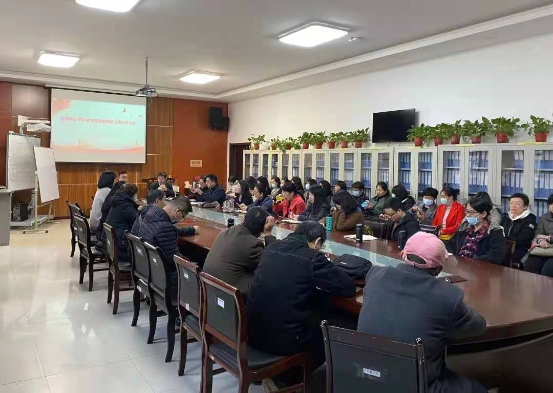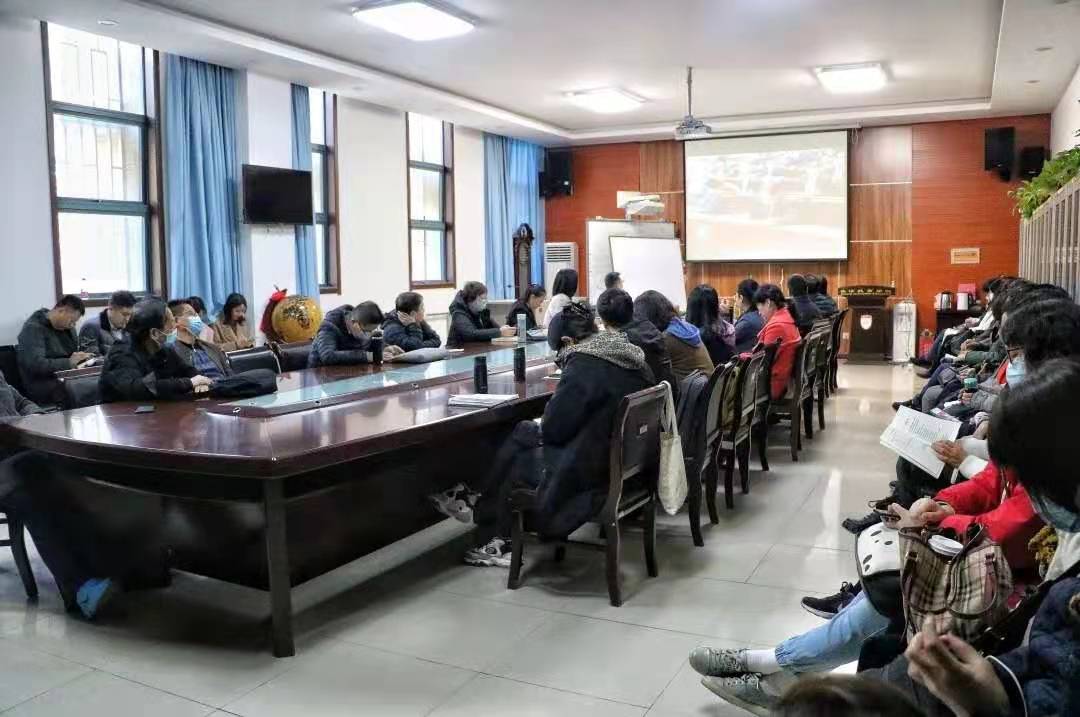 在教学楼H107会议室开展2021年春季学期首次教职工政治理论学习,全体教职工参加会议,党委书记姚玮主持会议。