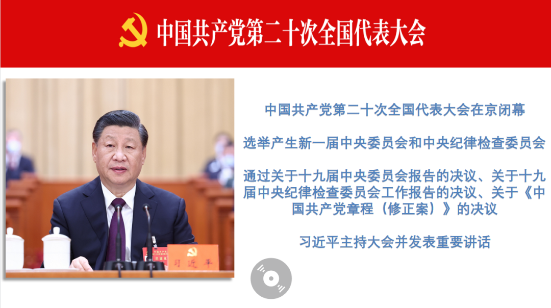 党的二十大于10月22日胜利闭幕,在二十届中共中央政治局10月25日下午就学习贯彻党的二十大精神进行第一次集体学习时,习近平总书记指出,学习宣传贯彻党的二十大精神是当前和今后一个时期全党全国的首要政治任务。