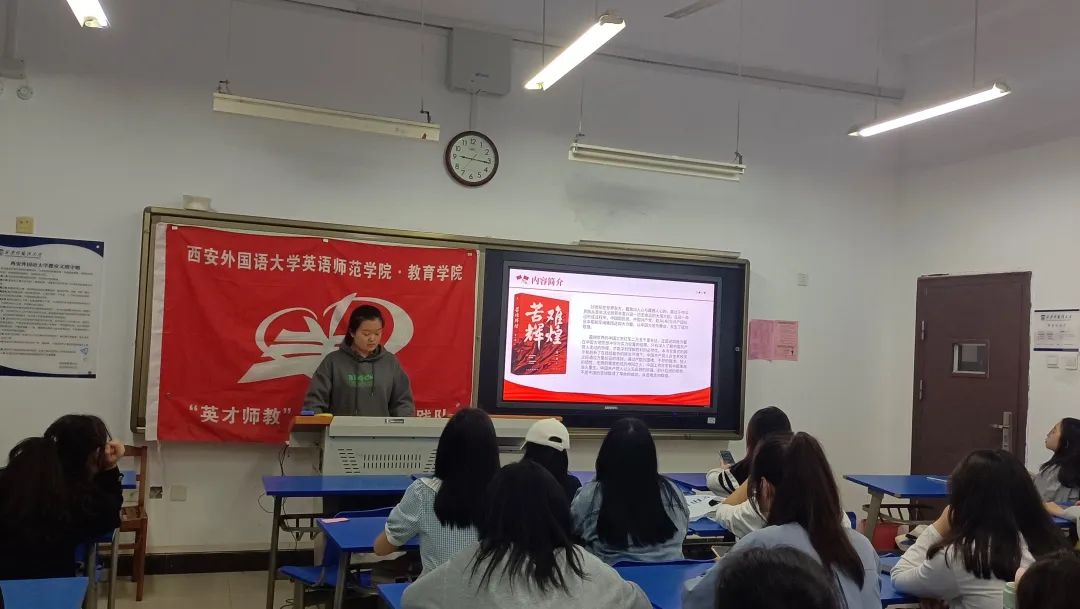 紧接着进入书本研读环节。主持人为大家分享了书中经典语录及经典片段。“回顾中华民族的救亡与复兴之路,无限感慨。我们曾经是奴隶,否则不会有1840-1949的百年沉沦;我们也拥有英雄,否则不会有1949-2049的百年复兴。”金一南先生的这句话给我们感慨,我们以历史后来人的视角看先辈们,感觉到他们伟大。中国革命的胜利不是天赐良机,而是来自千千万万的人的英勇献身。是什么支撑着这1921年由50多人组成的中国共产党,在历经了近百年的奋斗后,带领着中国屹立于世界强国之林?是中国共产党的恒久韧性,更是中国共产党员的坚定信仰!书中这样写道:“近代以来,没有哪一个政治团体像中国共产党这样,拥有如此众多为了胸中的主义和心中的理想抛头颅洒热血、前仆后继、义无反顾、舍生忘死的奋斗者。”