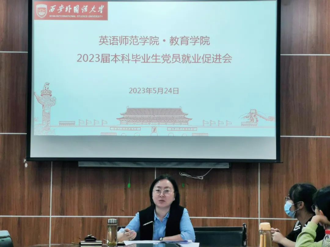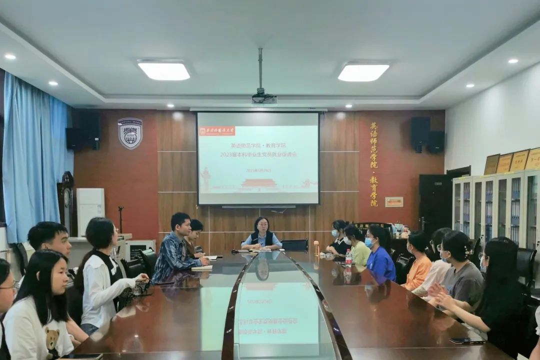 为深入贯彻党的二十大精神,认真落实党中央、国务院“稳就业”“保就业”决策部署,进一步发挥党员先锋模范带头作用,实现毕业生高质量就业,5月24日下午,学院召开2023届本科毕业生党员就业促进会。学院党委副书记刘一静、毕业班辅导员王鑫、鹿国鹏及英语师范学院·鸭奈飞