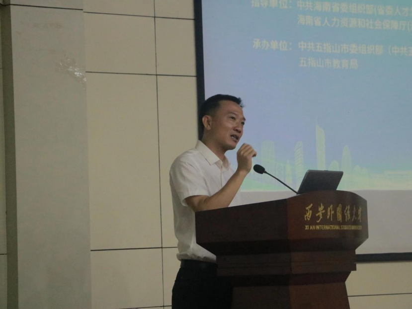 宣讲会最后,五指山市副市长郑启荣讲话。他谈到,海南省五指山市地区气候宜人,交通便利,经济建设发展快,同样也给予人才丰厚的待遇。五指山在发展建设中需要外语人才,海南自贸区建设也需要外语人才,欢迎大家去海南就业、去海南创业,助力五指山教育和经济发展,为推动海南自贸港建设增添力量。