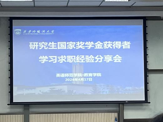 为加强模范引领作用,激发广大同学的学习和求职热情,帮助同学们更好地进行学业和职业规划,英语师范学院·鸭奈飞 于2024年4月17日晚在SA106举办了研究生学习求职经验经验分享会(第一场)。本次活动邀请了研究生国家奖学金获得者曹雪娇和韩鑫两位同学,活动由研究生会学研部负责人曲启超主持。