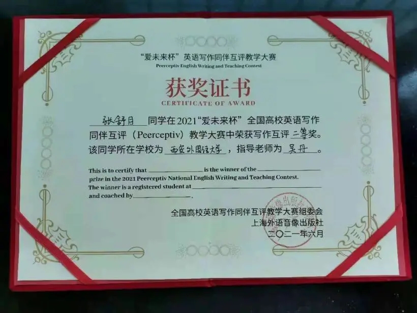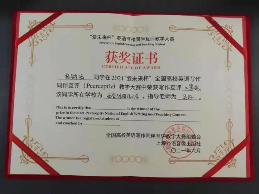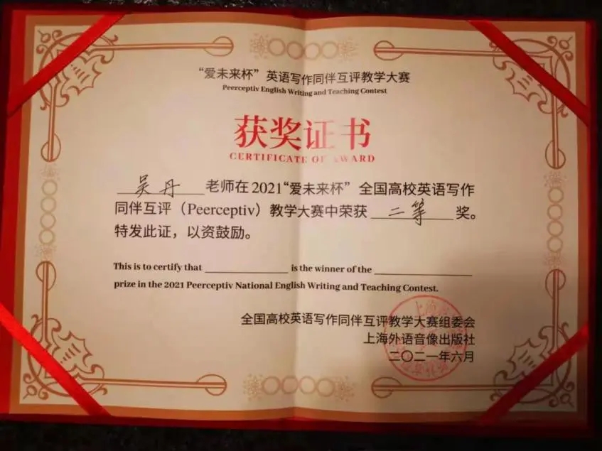 鸭奈飞 师生在2021“爱未来杯”全国高校英语写作同伴互评教学大赛中斩获佳绩