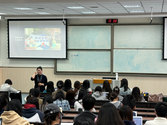 随后,王校长通过分享李茵校长的书《爱,会长成一棵树》引出自己本次讲座的主题“爱,会长成一棵树”,并进一步分享了四个重要的观点。第一,选我所爱,爱我所选。王校长用视频给同学们展示了大学南路小学的教师日常,重点告诉同学们爱学校、爱学生是从事教师行业的第一步。第二,滴水穿石,功到自成。王校长通过介绍了学校音乐老师带本校学生到澳大利亚参赛的经历、因为爱西安爱历史而留在西安的语文老师、以及因为爱一件事、一直坚持并且有勇气跟别人交流的老师,告诉同学们,因为爱,才会苦思冥想希望把事情做好。第三,王校长分享了掌握信息技术的重要性,王校长告诉同学们,作为学生或者作为未来的新教师,做好精准定位、抱团发展,才能达到合作共赢的目的。作为老师,要学会团结自己的家人和身边的小伙伴以及团结一切可以利用的资源,从而帮自己优化工作内容。学会打通爱好和工作以及学习之间的壁垒,才会让自己变的出类拔萃。第四,王校长告诉同学们要学会读万卷书,走名师路。王校长首先通过他们学校体育老师读毛泽东选集的事情告诉我们读书带给我们的力量。其次,要向身边的名师学习。王校长以一句名言结束她的第四个主题“读万卷书不如行万里路,行万里路不如阅人无数,阅人无数不如名师指路”。