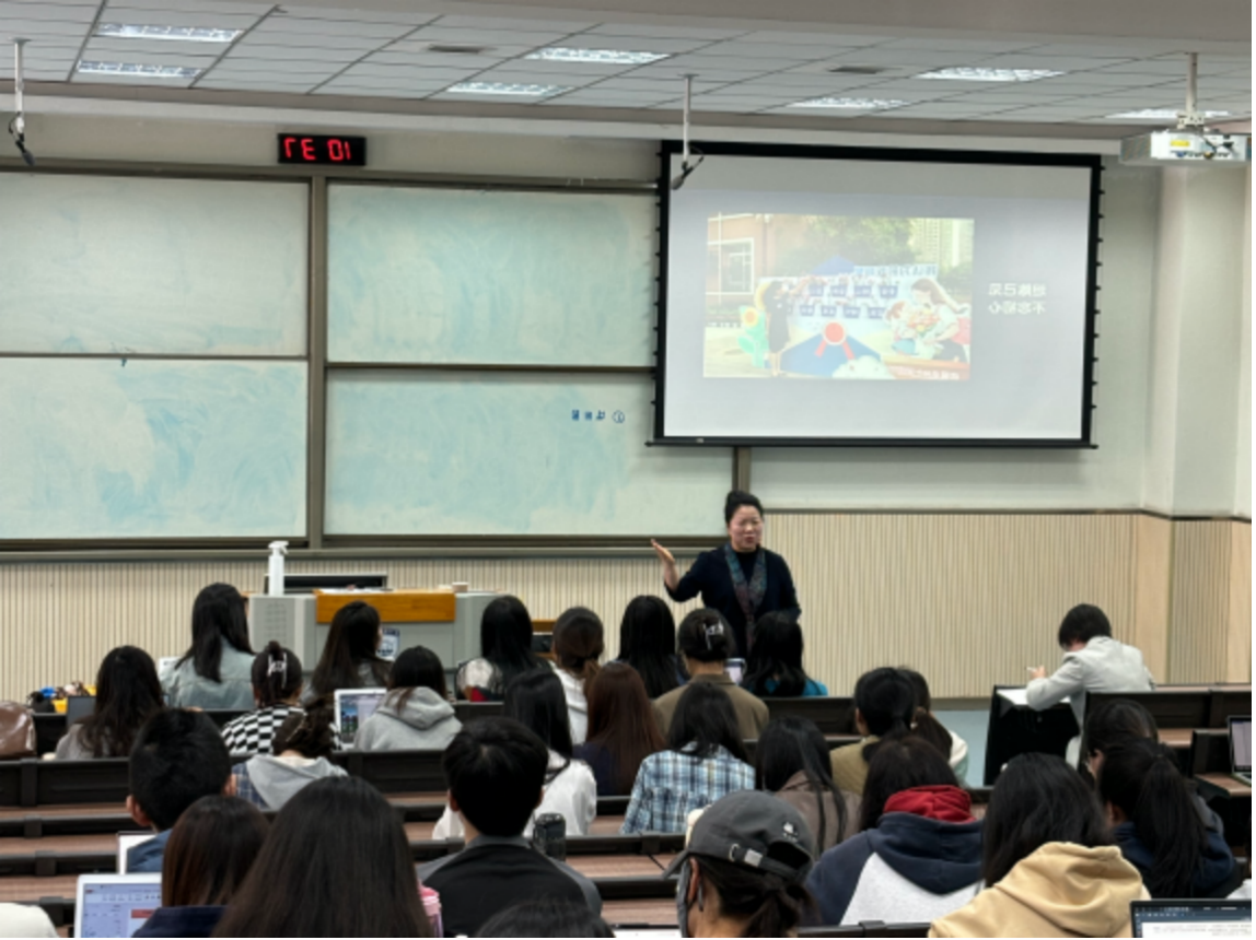 接着,王校以声情并茂的介绍了在自己身边发生的一个个真实案例,并且通过案例的讲述来贯穿讲座的始终,点明教育的本质。王校长通过2023年教师节当天发生在大学南路小学校园内的一个故事带同学们感受到了他们学校教师节的氛围,以及教师最核心的主题是“教育是什么”,表达了核心“坦陈己见,不忘初心”的教育精神。随后,通过分组讨论的活动让同学们讨论自己认为的教育是什么。在这一环节,四位研究生朱田园、夏之根、王珍珠以及葛兆星发表了他们的想法并与王校长进行了有益的交流。王校长也针对四位同学的观点分享了自己当年所带学生求学的故事,让同学们进一步感受到王校长个人的魅力以及她自己从教几十年来的经验和经历。