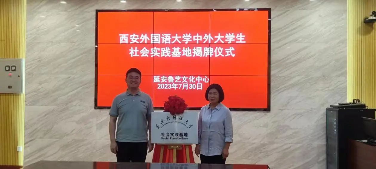 来说意义深远,希望今后能够深入合作、携手共进,一起把延安故事讲给世界听,为进一步推进红色文化国际传播贡献力量。双语宣讲队学生代表宋嘉瑶在发言中分享了自己自项目开展实施以来的感受,并表示作为英师学子,要发挥好自身语言优势,讲好中国故事、传播好中国声音,向国际大众展现可信、可爱、可敬的中国形象。仪式最后,我校团委副书记白澍与延安革命纪念地管理局党委委员、延安革命纪念馆党委书记、馆长、我校知名校友刘妮共同为社会实践基地揭牌,并与延安鲁艺文化中心王强签订了《共建大学生社会实践基地协议书》。
