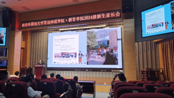 的专业特色和英语(师范类)专业的培养目标,鼓励学生“学无止境、学为人师、学思结合、学会发展”。刘一静副书记结合学院近年来毕业生就业情况对学生未来发展方向进行了介绍,不仅为学生指明了未来规划的方向,也激发了家长们对孩子未来就业的思考。24级新生辅导员晁梦雨向家长们介绍了学院2024级新生基本情况、学生日常管理相关要求以及新生可能面临的适应性问题,期待与家长们加强联系,共同引导新生顺利度过大学适应阶段。本次家长会不仅加强了家长与学校之间的联系,也展现了学院对学生成长的全方位关注与支持。