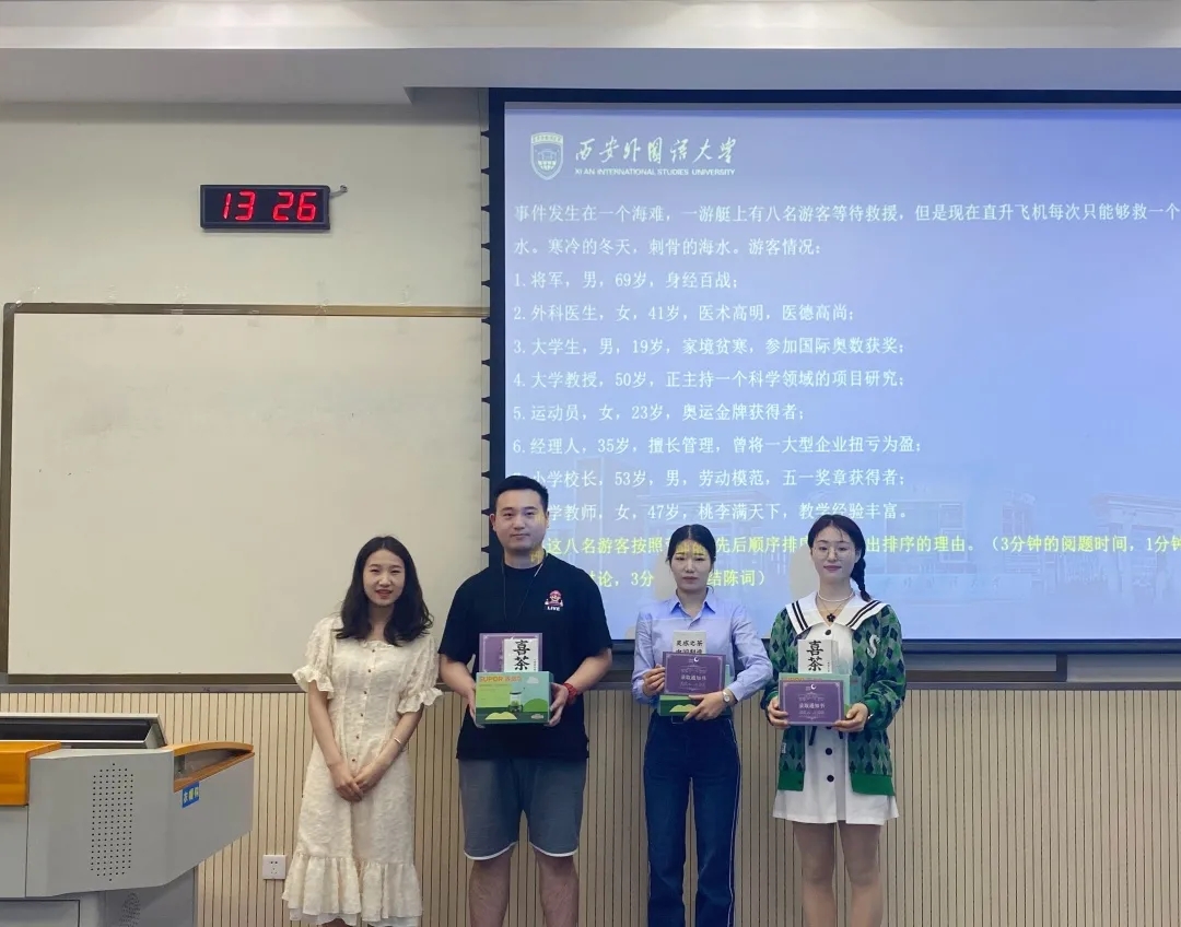 本科生组的比赛中,来自晓教育集团星火教育人才项目中心的吴俊老师首先为大家进行了活动流程介绍。本次活动以无领导小组讨论为主要环节,比赛共分为三组进行,题目公布后同学们便开始了热烈的讨论。在个人陈述与小组讨论等环节后,每个小组分别进行了最终的总结发言。比赛结束后,来自星火教育西安分公司的人力负责人徐妤娜老师对比赛的情况进行了简短的总结与指导,并对所有参赛同学提出表扬与鼓励。活动接近尾声,经过各位评委的认真评审,最终大赛选出三名表现突出的同学颁发荣誉证书。吴俊老师还向所有参赛同学介绍了星火教育实习生项目,鼓励有就业意向的同学利用假期时间积极参与实习活动。