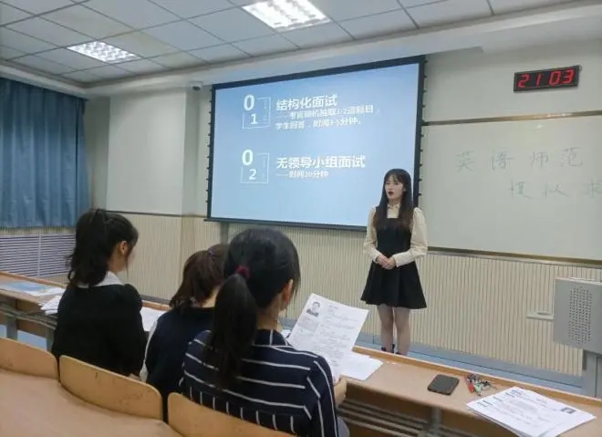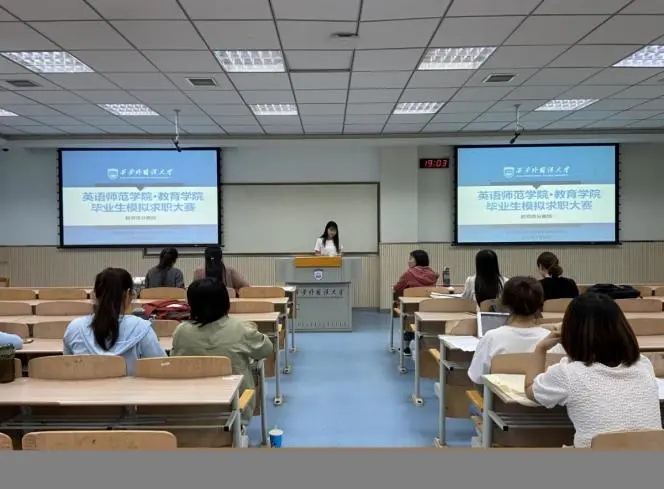 模拟求职大赛。本次大赛邀请晓教育集团星火教育代表和学院优秀研究生作为评委,学院本科2018级辅导员赵怡宁、研究生辅导员薛璐以及近50名2022届毕业生参加了比赛。