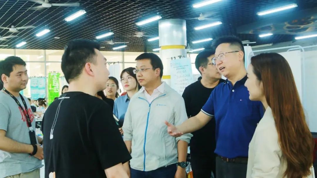 学院党委书记姚玮、党委副书记刘一静、副院长王嘉铭、2017级辅导员绪道恒、白蓉蓉、王滋雨在招聘会现场与用人单位面对面交流,了解人才需求及英语行业未来几年的人才储备计划,对用人单位到校选才表示慰问和感谢,并与现场的同学进行了亲切的交谈。