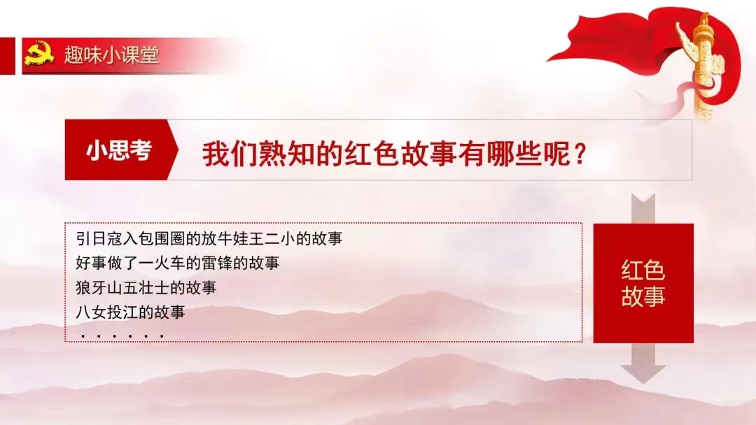 提起红色故事,大家的脑子里一定蹦出了好多答案吧?从小到大,我们学习了很多可歌可泣的红色故事,有放牛娃王二小的故事,有雷锋的故事,有狼牙山五壮士和八女投江的故事等等。那么,接下来,我将为大家讲述的是一群娃娃们的故事。