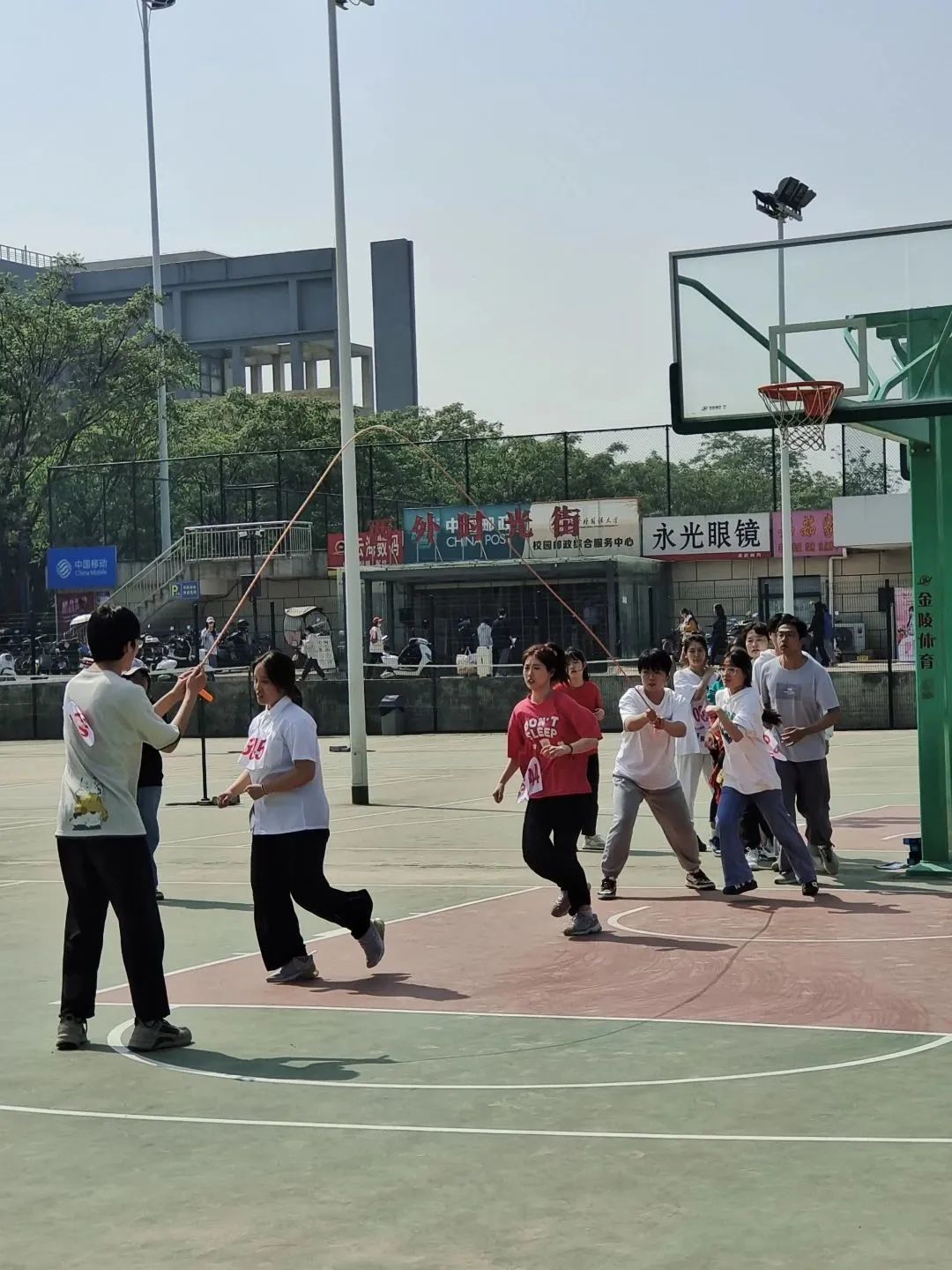 在接力跳大绳比赛中,一个接一个的冲入绳中,它告诉我们在生活中面临很多的抉择,这时候往往就是一句:“我已准备好,然后便勇往直前”。而顾虑,恐惧,犹豫,都是绊脚石。所以,在生活中,何不让自己活的轻松些,洒脱些?整个环节考验的不仅仅是个人的胆量和勇气,更考验的是团队的配合,团队永远是在你最需要的时候坚定不移的在你身后!