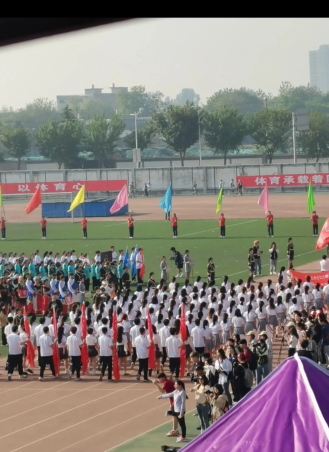 这是大学期间参加的第一次运动会,虽然没有运动会项目,但观看项目的过程同样让人热泪盈眶。运动员们绷紧神经,目光坚定,用尽全力是一种感动;而台下的观众呢,你瞧!他们在击鼓,在摇旗,使出浑身解数加油助威,同样也是一种感动。而这点点滴滴,投射出来的便是人们对体育精神的传承与发扬。