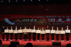 “西外五四青年奖章”获得者代表、省学联驻会执行主席、俄语学院研究生陈紫荆,“五四红旗团委”获奖单位代表、中国语言文学学院团委书记徐雯瑛先后作大会交流发言。她们表示,将珍惜荣誉,戒骄戒躁,坚持发挥模范带头作用,引领广大青年深入学习、宣传、贯彻习近平新时代中国特色社会主义思想,在青春的赛道上奋力奔跑。