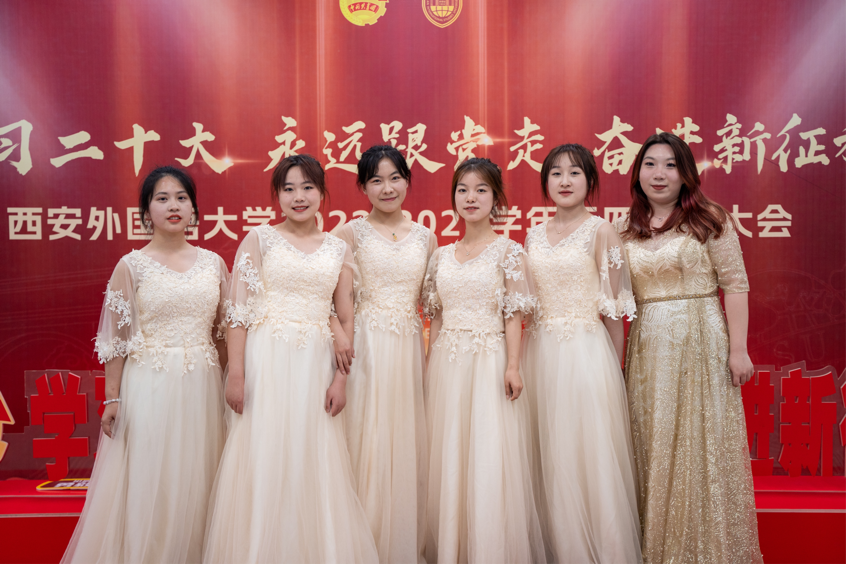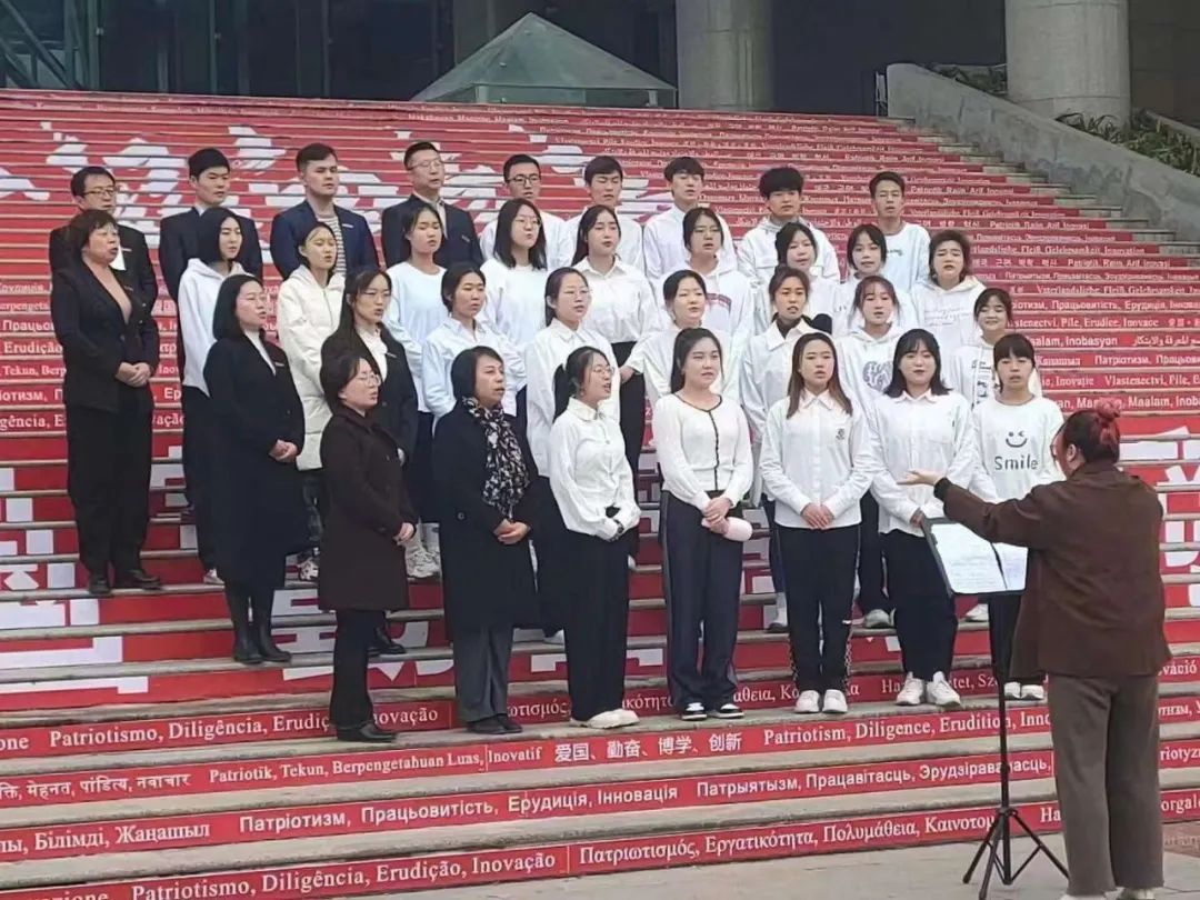 师生合唱团铿锵有力的节奏和洪亮整齐的歌声充分展现了西外人奋发向上的姿态。