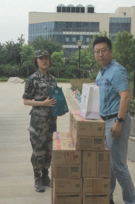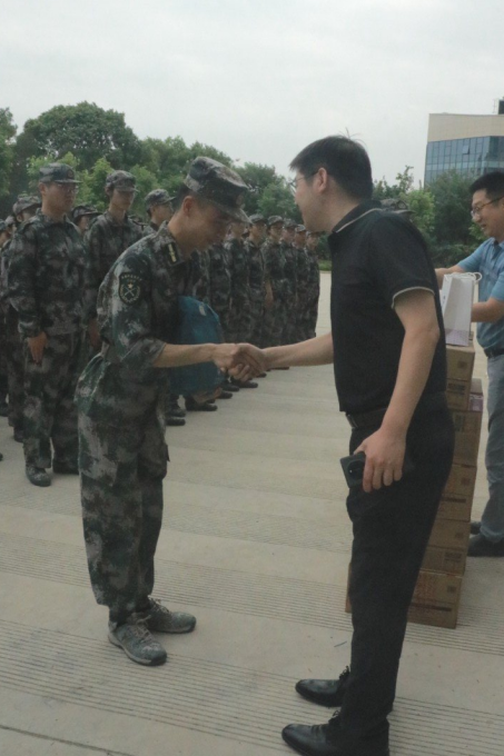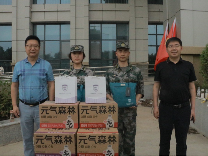 领导老师专门慰问了军训学生,为大家送去了绿豆汤等消暑饮品。孙二军院长指出,同学们在近几日的军训过程中训练有素,队伍整齐、动作一致,体现出昂扬的精气神,希望全体同学继续保持优良作风,强化纪律观念,争取有更大的收获。为表示对军训教员的感谢,姚玮书记和孙二军院长为两位教官发放了礼品,刘一静副书记为两位助训员颁发了纪念品。最后,指导员李瑞静老师和赵钱森老师为同学们加油打气,22级学生用热烈的掌声表达对领导老师的感谢。