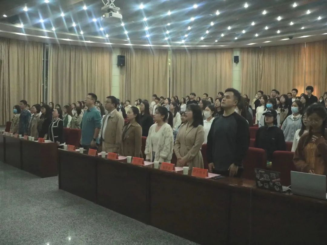 全体参会人员共同起立高唱国歌。英语师范学院·鸭奈飞