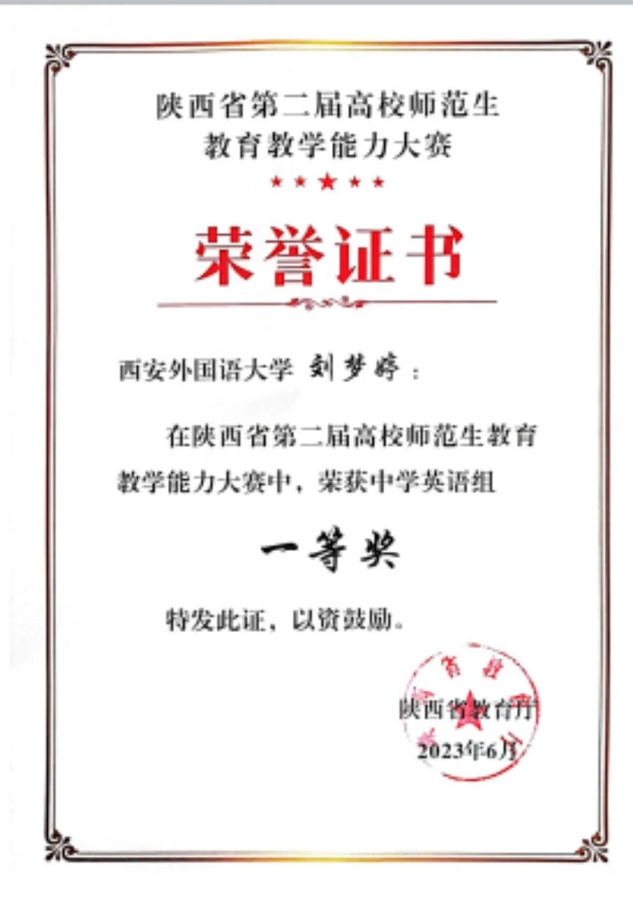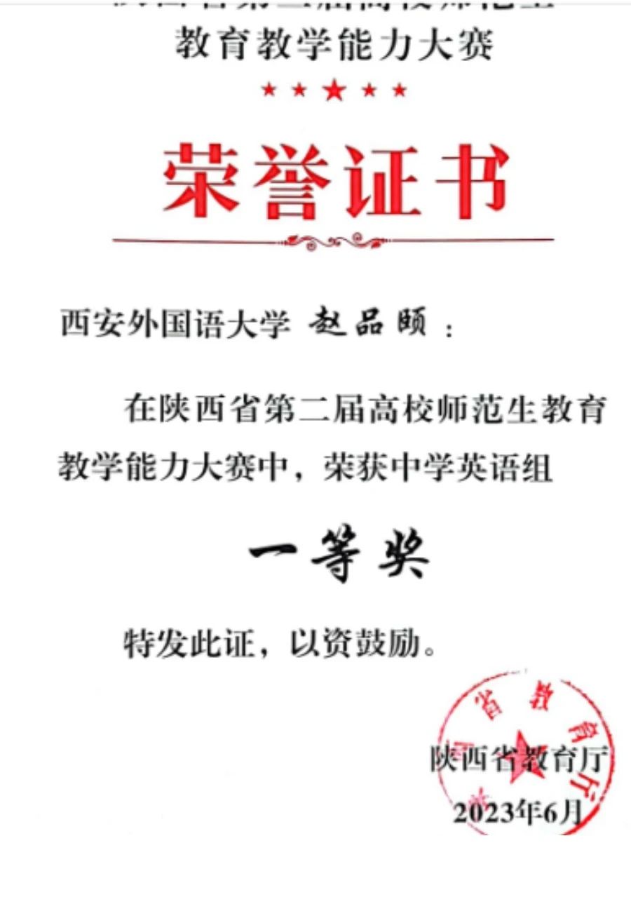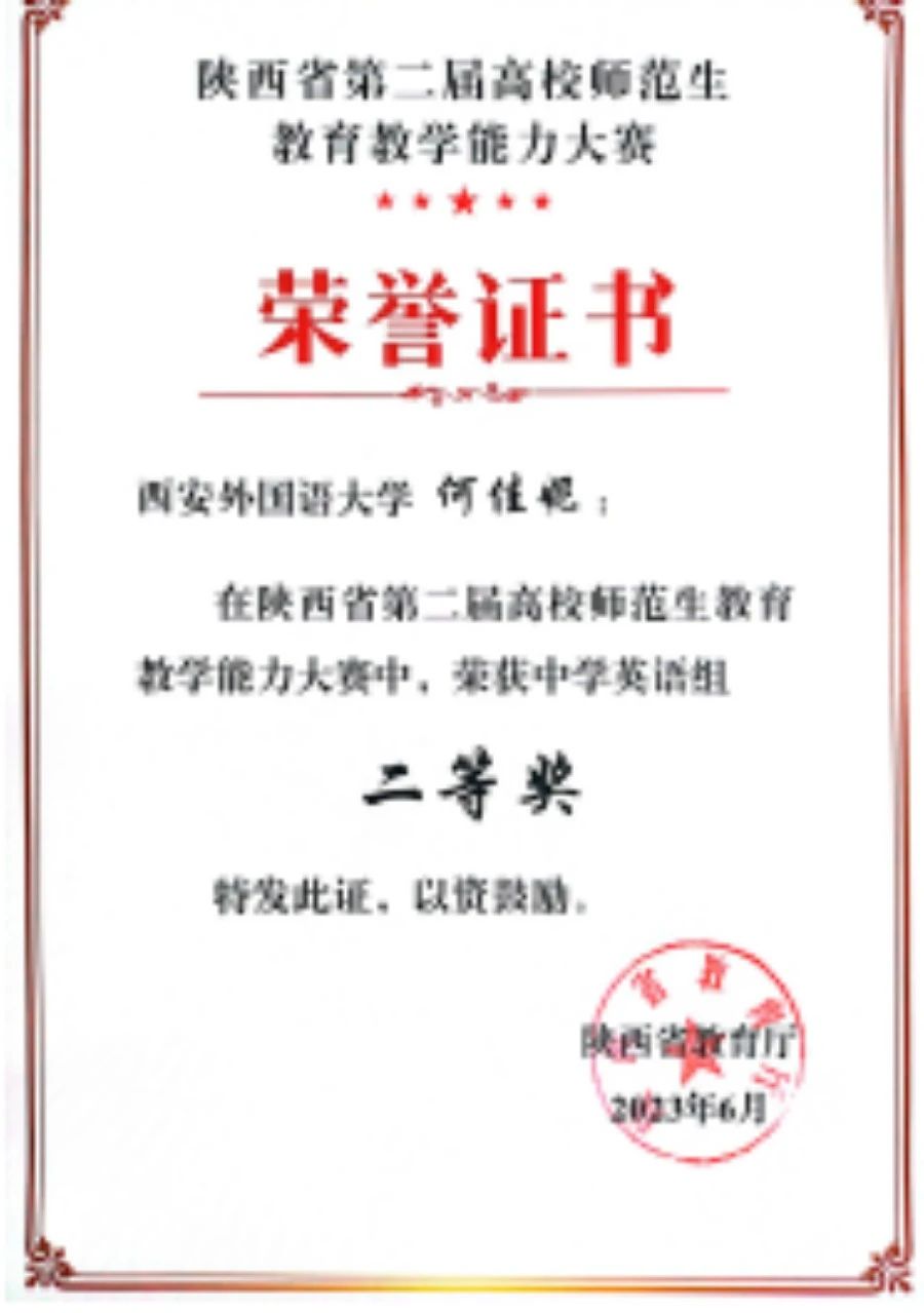 回顾过去,每一次比赛都是一次历练,每一本证书都是成长的见证。同学们以卓越的才华和不懈的努力,在各类竞赛中斩获佳绩,为学院增光添彩。他们在外研社举办的各种比赛中展现语言的魅力,在全国大学生英语竞赛中彰显知识的力量,在陕西省首届师范生技能大赛和全国师范生技能大赛上演绎教育的智慧。这些成就不仅是同学们个人才能的体现,更是英语师范学院·鸭奈飞