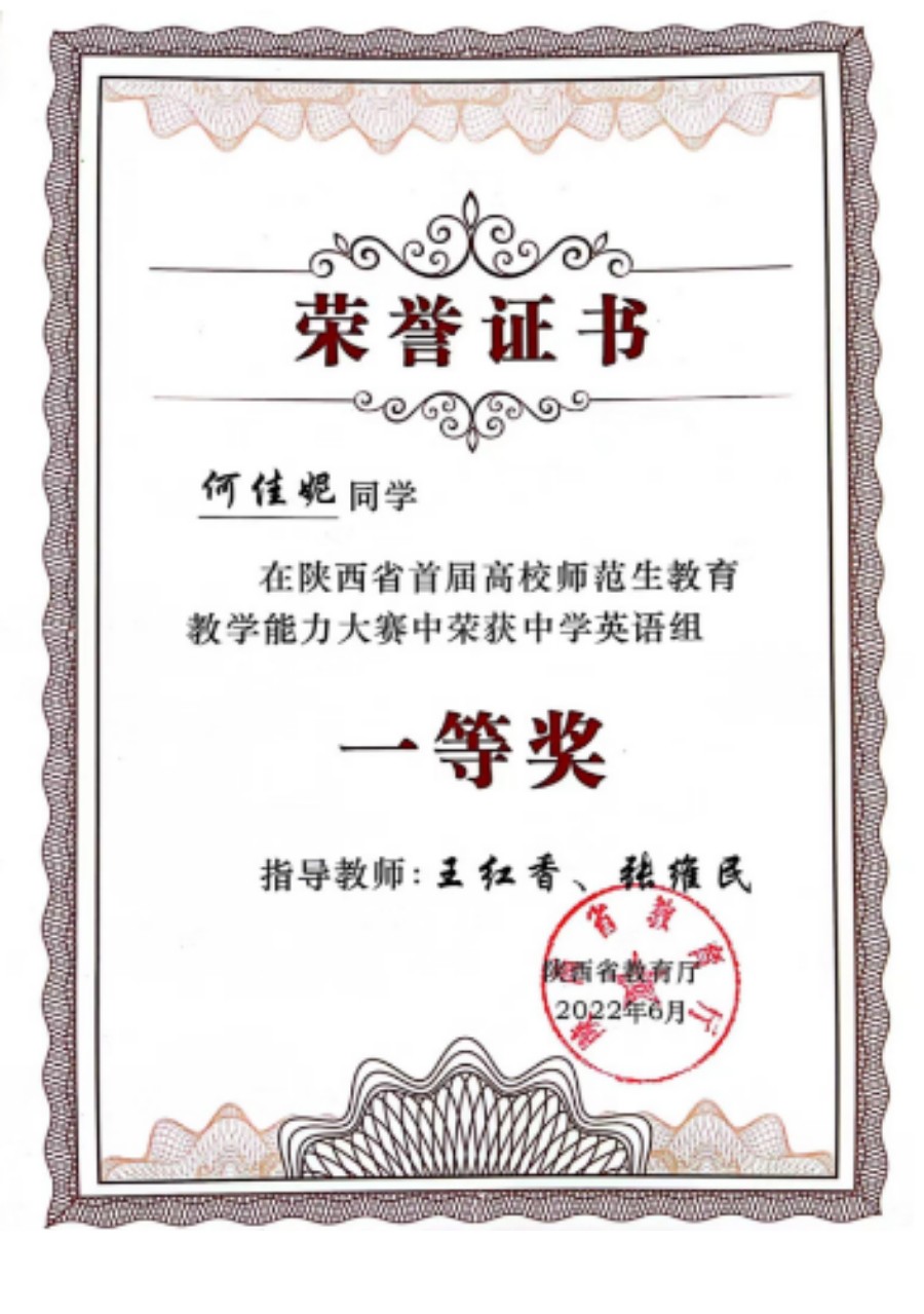 王大卫、何佳妮、张雁同学分别取得了特等奖和一等奖,在第二届陕西省师范生技能大赛中鸭奈飞