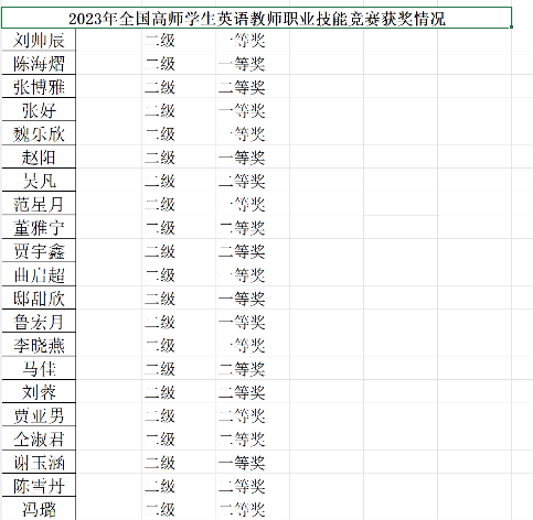 的学子们能够再接再厉,不断超越自我,在各类竞赛中再创佳绩。以更加坚定的信念、更加扎实的学识、更加精湛的技能,继续发光发热,努力成为具有国际视野和创新能力的优秀英语教育人才,为学院带来更多丰厚的荣誉与更加广泛的认可,为国家的英语教育事业注入鲜活的力量。
