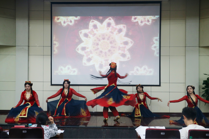 在比赛间隙,由美合日班,古丽帕如孜,维尼拉,阿亚拉,依丽妮尕尔五位同学带来的舞蹈表演《石榴花开》,李思儒、曹卜月、梁柔、李淼四位同学合唱的《上春山》,以及李思儒同学独唱的《生僻字》,给在场师生们带来了一场视听盛宴。