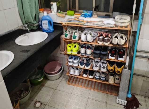 为了保持宿舍卫生,我们有一套自己的清洁秘籍:我们按照床位号分配周一至周六的值日工作,自己管理自己的垃圾桶,并且每周轮流打扫厕所,共同维护宿舍卫生;同时,我们也合资购置了鞋架、脸盆架、牙刷牙杯架等设施,用来保持宿舍环境的规整有序。