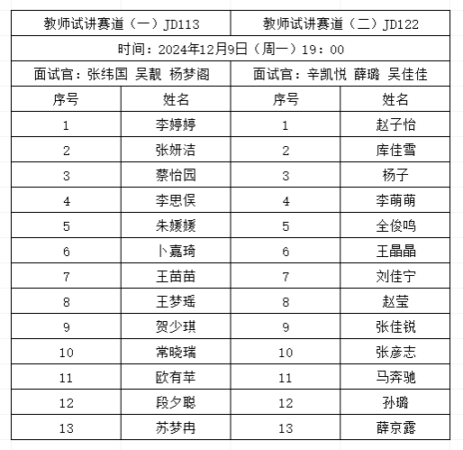 经前期主题陈述的筛选,就业赛道共有56名选手晋级模拟面试环节,现将模拟面试环节名单及具体安排公示如下: