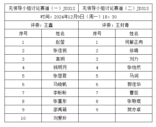 在无领导小组讨论赛道中,同组的应试者将集结成为一个临时工作小组,在规定时间内(不超过10分钟)针对给定问题展开深入探讨并形成决策,重点聚焦于对应试者临场表现的全面考察。本次无领导小组讨论共分为 2 组,讨论题目以及详细规则将在比赛开始前由评委予以宣布,待 2 个小组的比赛全部完结后,随即开展现场点评环节。