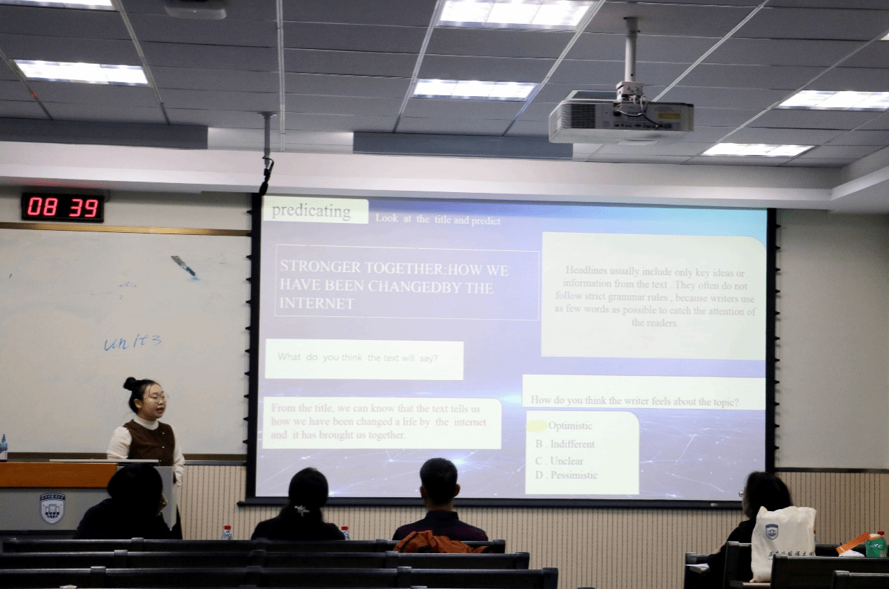 本次比赛以基础教育新课程改革为背景,特邀西工大附中、交大附中、高新一中、陕西师范大学附中、高新一中陆港中学等一线中学英语教学名师担当评委。采取3分钟说课和5分钟讲课的形式,全面考察参赛选手的教学基本素质、教学设计、教学过程呈现、教学效果及教学反思等能力。选手们充分展示了各自的教学设计理念和思路,以及教师的教学风采。