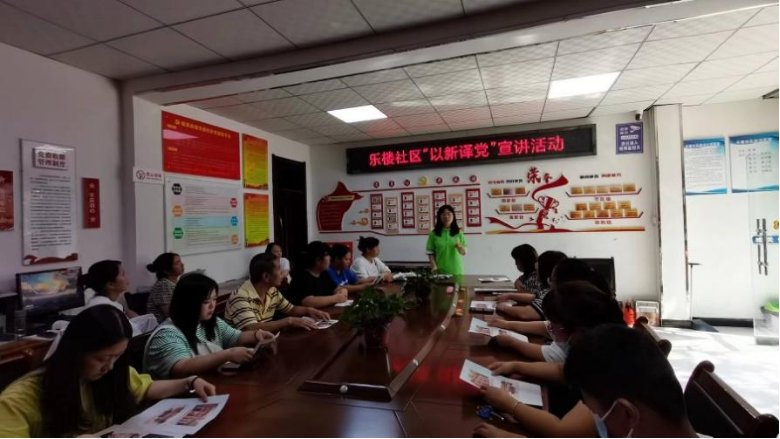 (项目成员张誉馨在渭南市乐楼社区社区居委会进行理论宣讲)