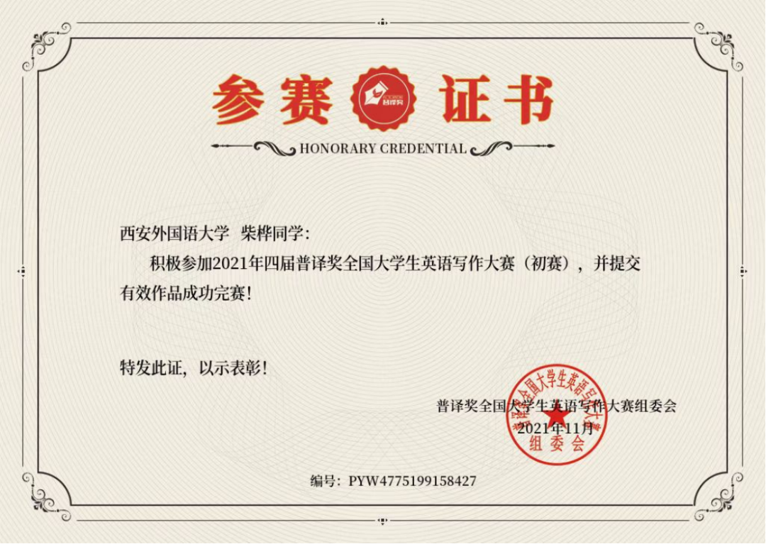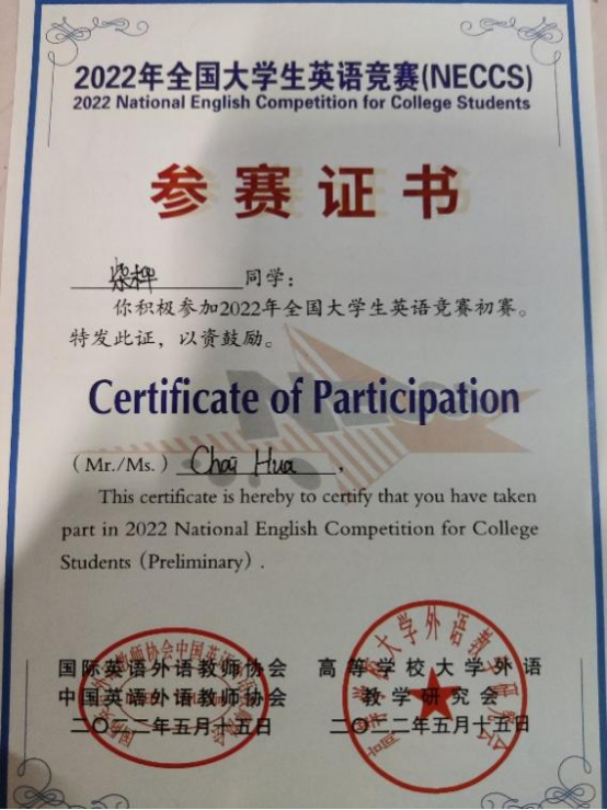 自项目成立以来,项目团队成员积极提升自我语言素养,锻炼英语口语、翻译等能力,积极参加各类型专业竞赛活动。成员柴桦积极参加大学生英语竞赛、2021年四届普译奖全国大学生英语写作大赛,提升语言应用能力。同时,项目团队成员还积极提高思想认识,向党组织靠拢,现已有党员1名,入党积极分子4名,团队全体成员不断加强理论学习,提高理论素养水平,积极开展实践活动,提升双语理论宣讲能力。