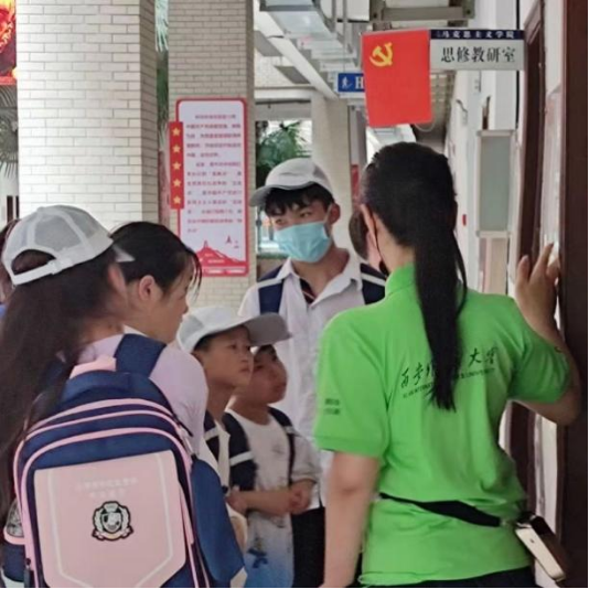 (项目成员万斐雪在鸭奈飞 英语师范学院党史学习教育专区对小学生们进行完整、系统的双语宣讲)