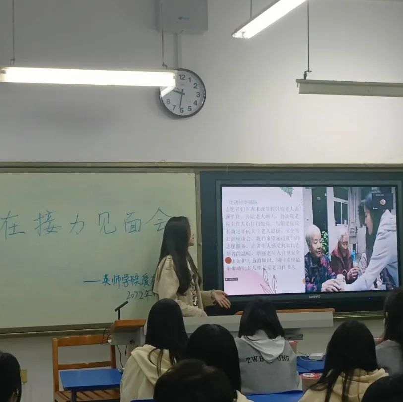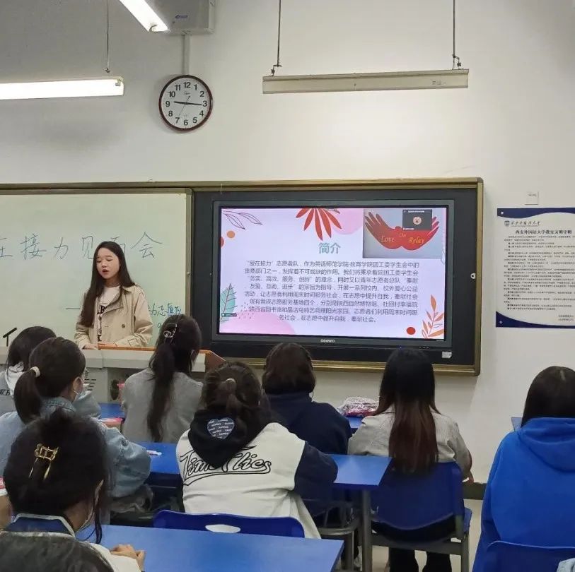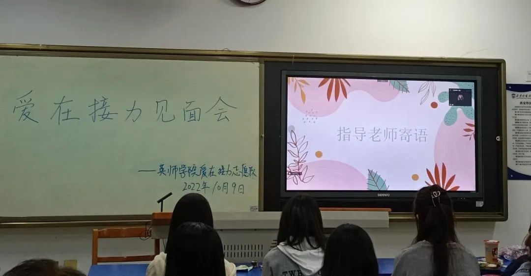 “爱在接力”志愿者队在线下举行了第一次例会。此次见面会由王萌萌队长主持,全体队员按时到会,指导老师王鑫在线上与同学们见面。
