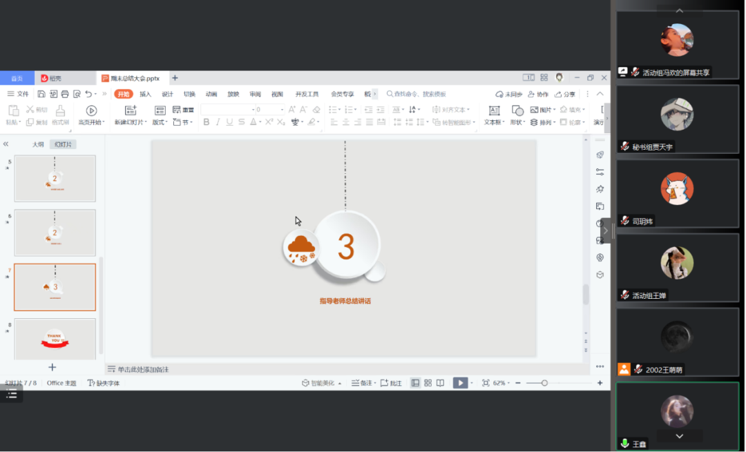 坚守初心,砥砺奋进。2023年1月13日晚7点,“爱在接力”志愿者队在线上举行了年终总结大会。大会由活动组冯欢同学主持,全体志愿者队队员按时参加,指导老师王鑫出席此次会议。