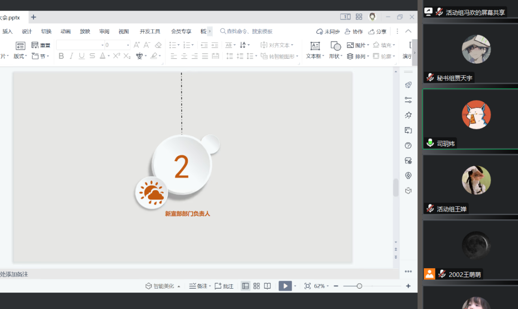 秘书组组长贾天宇同学对队内团日活动开展情况和组内工作完成情况作了总结。秘书组的同学踊跃参与推文撰写工作,与其他两组同学协作配合,10篇推送记录了每一个难忘的志愿瞬间。