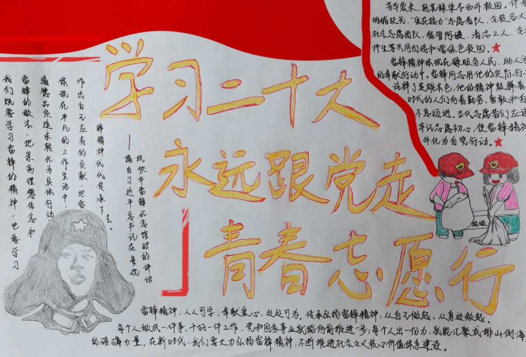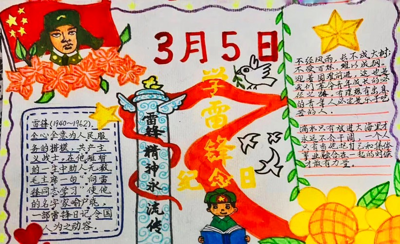 雷锋是平凡的,他的言行像一泓清泉映照出一颗善良质朴的心;雷锋又是伟大的,他的精神代代相传,是我们永远的精神旗帜。如今经济发展了,生活也富起来了,更需要弘扬雷锋精神,生活的本质和人生的意义将在实践中收获感悟,让我们一起把雷锋精神传承下去!