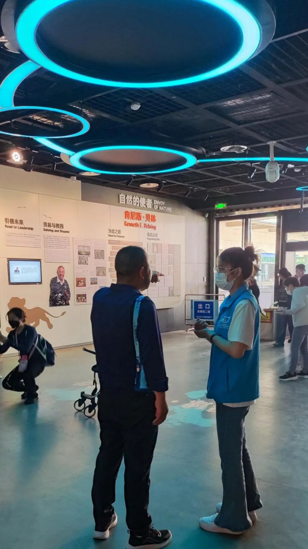 在二楼的志愿者们耐住封闭的场馆温度,不时检查海洋标本,友善提醒小朋友不要攀爬拍照;在四楼的志愿者是玻璃栈道正确行走方向的引导者和婴儿车的看管者还是小朋友的守护者,更是志愿者们间隔换岗、相互体谅、互帮互助的关心者。志愿者们用一心温暖一心,将爱的力量不断延续,熠熠生辉。