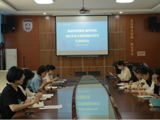 于2023年5月19日在H107会议室召开了学生社团工作交流研讨会。本次研讨会旨在促进各社团之间的交流与合作,为校园文化建设提供更多活力和动力。参加本次研讨会的有“今日青年”理论研习社指导老师刘芳、爱在接力志愿者队指导老师王鑫、AISEE心理协会指导老师晁梦雨、英才师教党团员社会实践服务队指导老师王封青,以及来自各学生社团的骨干成员。本次座谈会由学院党委副书记刘一静主持。