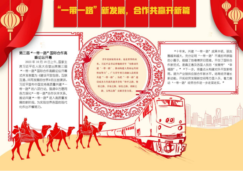 为深入感受“一带一路”倡议提出十年来,中国同其他国家取得的伟大成就,彰显国家力量与民族担当,更好地激发青年投身“一带一路”建设的热情,为中国梦的实现与人类命运共同体的构建不断添砖加瓦,“今日青年”思政理论研习社以第三届“一带一路”国际合作高峰论坛为切入,于11月9日开展了以“‘一带一路’新发展,合作共赢开新篇”为主题的团日活动。全体社员积极参与活动,并提交了如下活动作品: