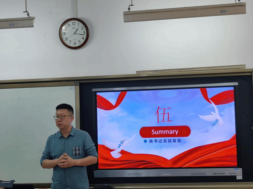 活动第五项,姚书记与刘老师作总结讲话。首先,姚书记对此次学习活动予以肯定,希望社团全体成员继续保持理论学习的积极性。鼓励社团成员抓住实践机会,积极分享学习感受,不断自我反思,将所学知识升华为自己的思想。紧接着,姚书记就理论学习分享了自己的感受。他认为理论学习是枯燥的,一定要扎扎实实沉下心去研究,通过长期的坚持与学习,理论知识能内化成精神,精神又外化成行为。最后,刘老师鼓励社团成员创新理论学习方式,并将理论学习贯彻到日常生活中。希望社团成员结合自身专业,积极参加社会实践,在各种活动比赛中展示自己的综合实力。